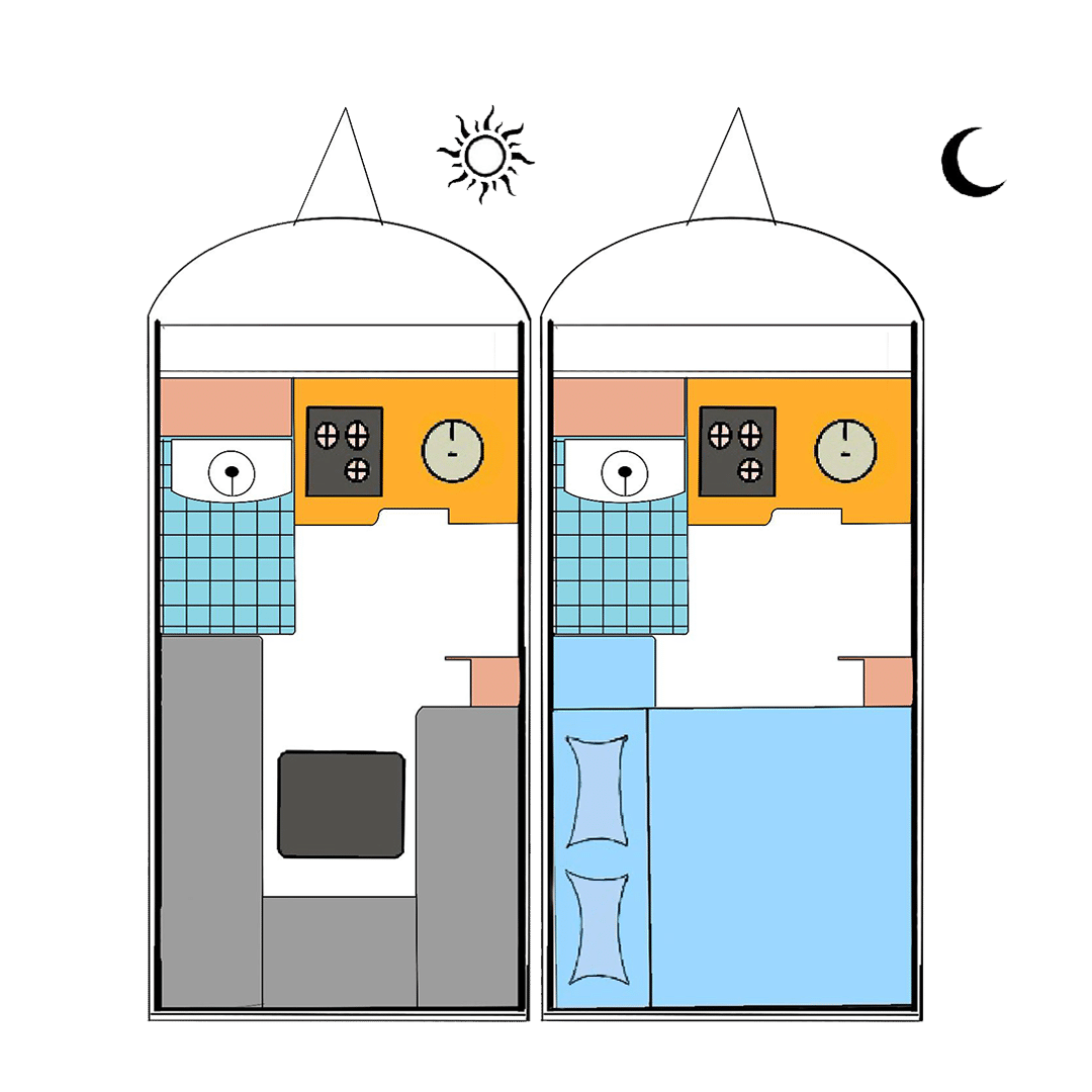 Inception 400 Kitchenaid, geniş iç hacmi ve modern tasarımı ile karşınızda. 2-4 kişilik yatak kapasitesi, geniş oturma alanları, yüksek depolama hacmi ve konforlu sürüş tekniği ile Inception serisi bir karavandan beklediğinizden daha fazlasını size sunuyor.